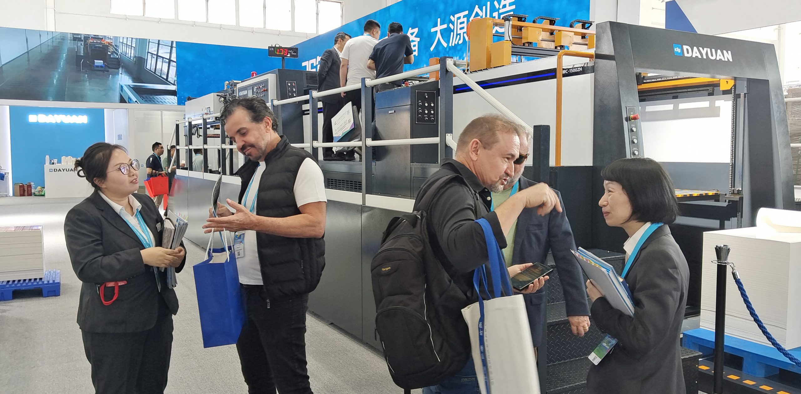 展會現(xiàn)場,大源作為行業(yè)多機組燙金深壓紋模切機領(lǐng)航者,其全球首發(fā)的920尺寸的叁機組燙金模切機MHK-3S920TTT憑借前沿設(shè)計迅速成為焦點,吸引眾多新老客戶駐足咨詢。