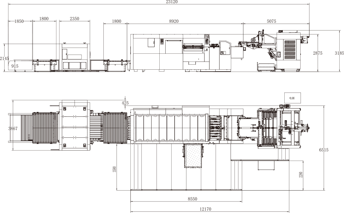 | 整機尺寸(高堆卷簾式收紙) | 14370×7160×2972mm | 11853×6560×2972mm | 10344×5970×2876mm | 9887×5500×2800mm |