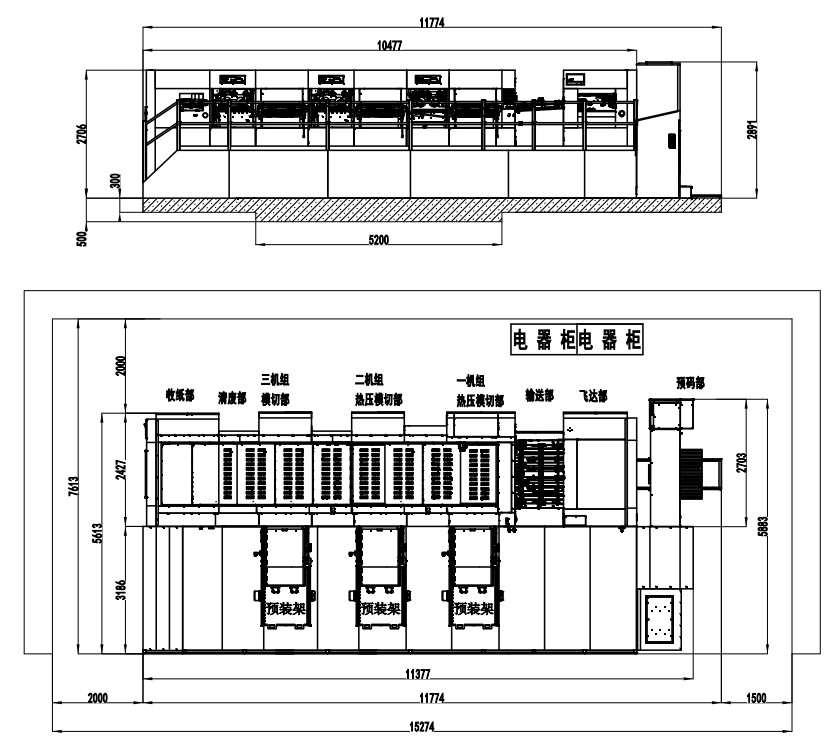| 整機(jī)尺寸(含板框預(yù)裝架) | 11774×7613×2891mm |