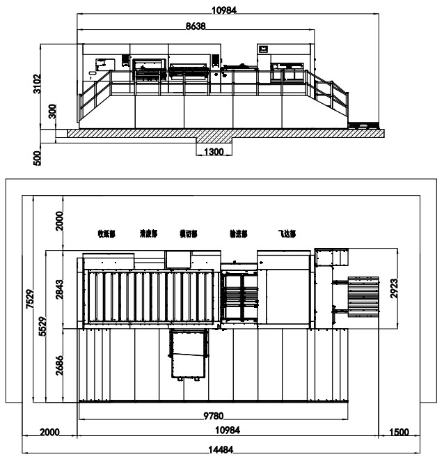 | 整機尺寸 (高堆卷簾式收紙) | 10948×5529×3102mm(L×W×H) (寬含腳踏板) |