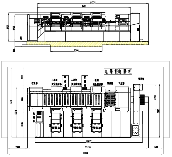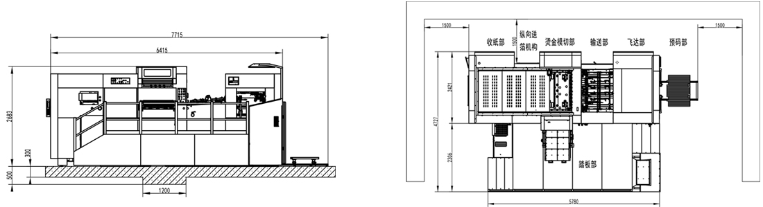 | Machine Dimensions(Including Die Preloader) | 14995×7613×2909mm(L×W×H) (L: paper prepared track included, W: platform included) |