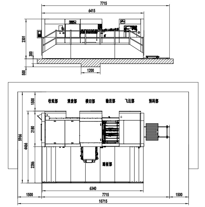 | Machine Dimensions (Including Die Preloader) | 7715×5366×2301mm(L×W×H) (L: paper prepared track included, W: platform included) |