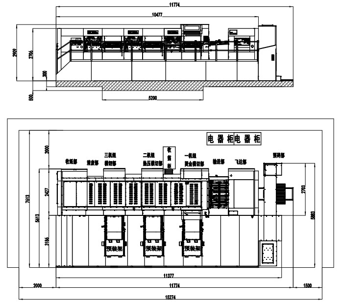 | Machine Dimensions (Including Die Preloader) | 11774×7613×2909mm(L×W×H) (L: paper prepared track included, W: platform included) |