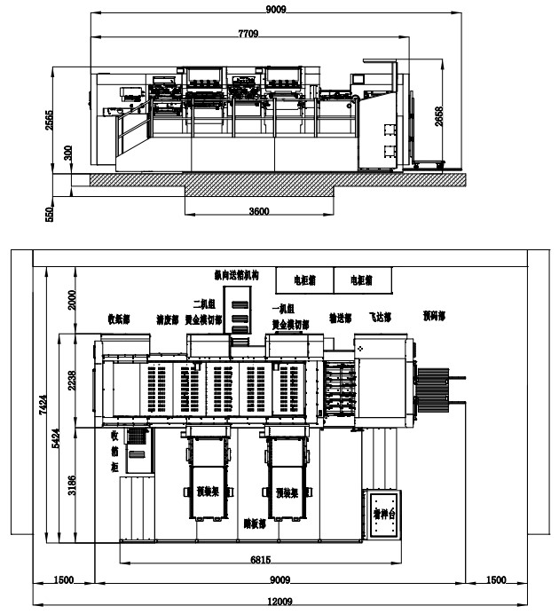 | Machine Dimensions(Including Die Preloader) | 9009×7424×2658mm(L×W×H) (L: paper prepared track included, W: platform included) |